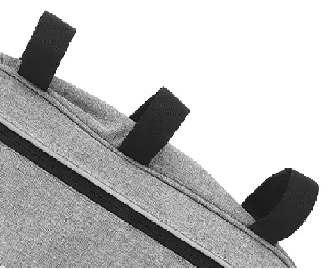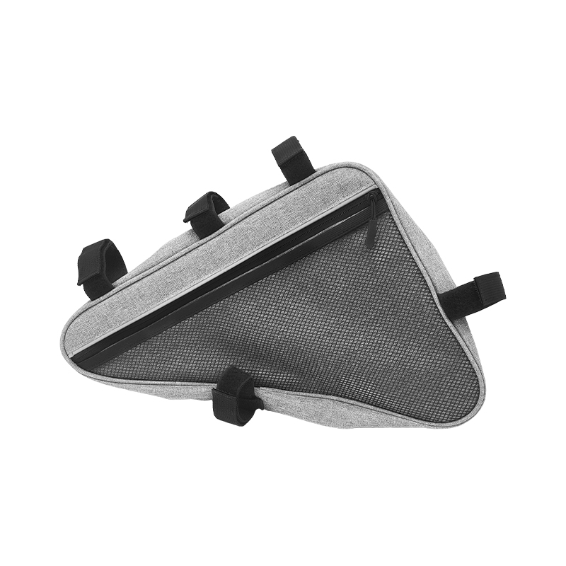 BI-03 grå road mountainbike triangelväska har flera fickor med strategiskt utformade fack för bekväm förvaring av föremål som telefoner, plånböcker, nycklar och vattenflaskor. Den mäter 34 x 6,5 x 26 cm och rymmer 5,75 L. Den levereras med reflekterande remsor för ökad säkerhet under nattkörning och kan anpassas med en logotyp. Den vattentäta dragkedjan på sidan gör den lätt att bära.